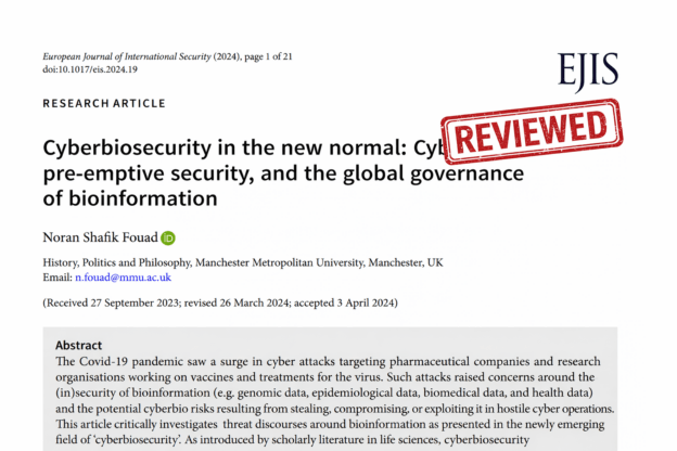 In an era in which the life sciences increasingly converge with information technology, the terrain of security is being fundamentally reconfigured. Noran Shafik Fouad’s article offers a timely and incisive intervention into this evolving “cyber-bio” confluence: what she terms “cyberbiosecurity”. At its core, the article asks: how should we understand the governance of bioinformation in the new normal of post-Covid, digitally mediated science? How are threat discourses being co-produced with policy regimes, and what are the equity and power implications of framing bio-information as a strategic asset subject to cyber-threats? The article maps this terrain, critiques dominant framings, and issues normative guidance for treating bioinformation as a global common good rather than merely a national strategic resource.